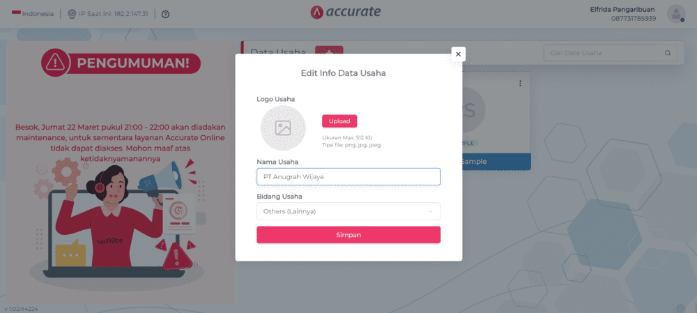 Dengan membuat Data Usaha perlu membutuhkan detail informasi perusahaan sebagai tanda database yang digunakan dapat dikenal. Namun, jika ada perubahan maka Anda perlu edit informasi database dan sebelum mengikuti cara edit info data usaha di Accurate Online. Anda hanya bisa ubah informasi seperti :
