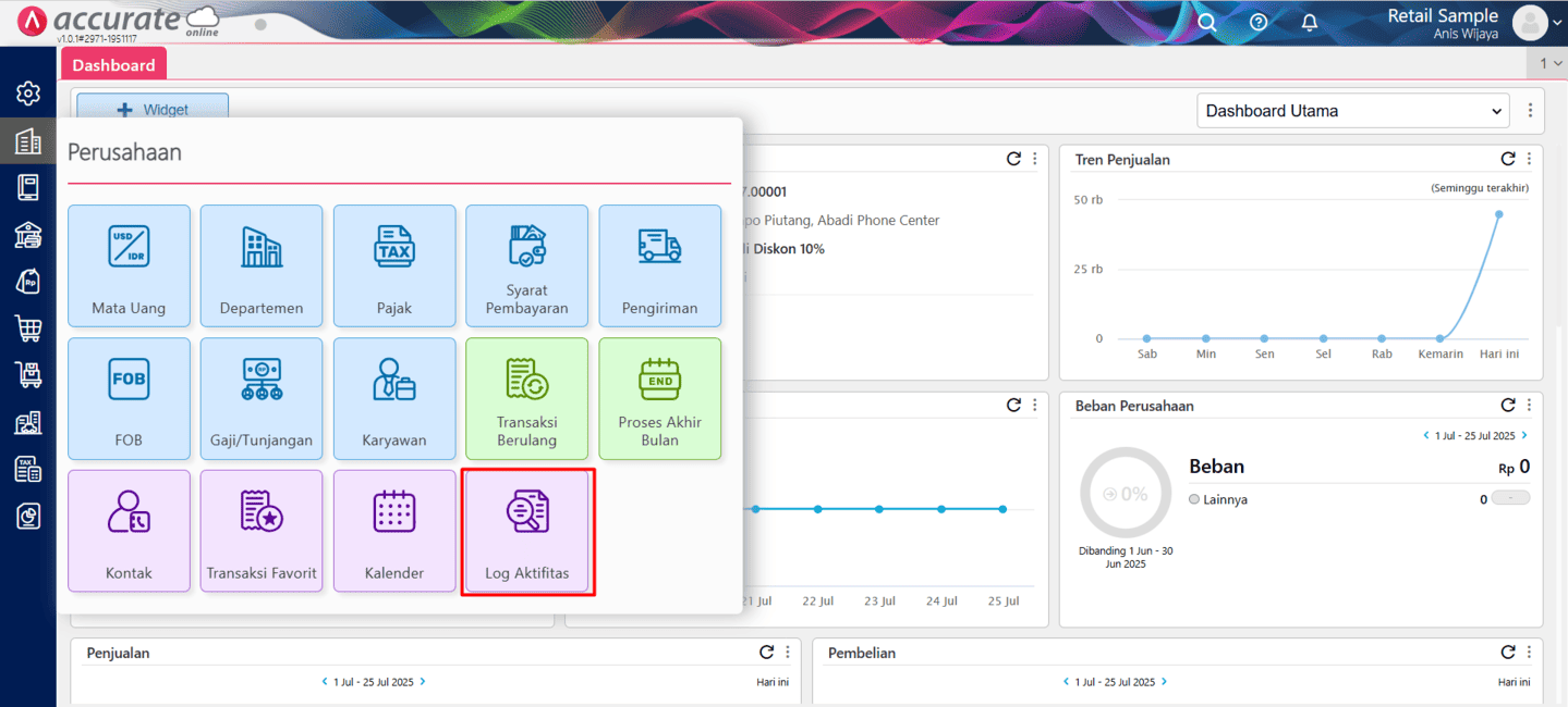 Berikut adalah penjelasan lebih lanjut mengenai fitur Log Aktifitas di Accurate Online: