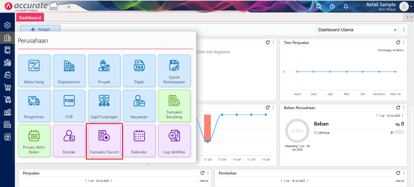 Cara Menggunakan Fitur Transaksi Favorit di Accurate Online