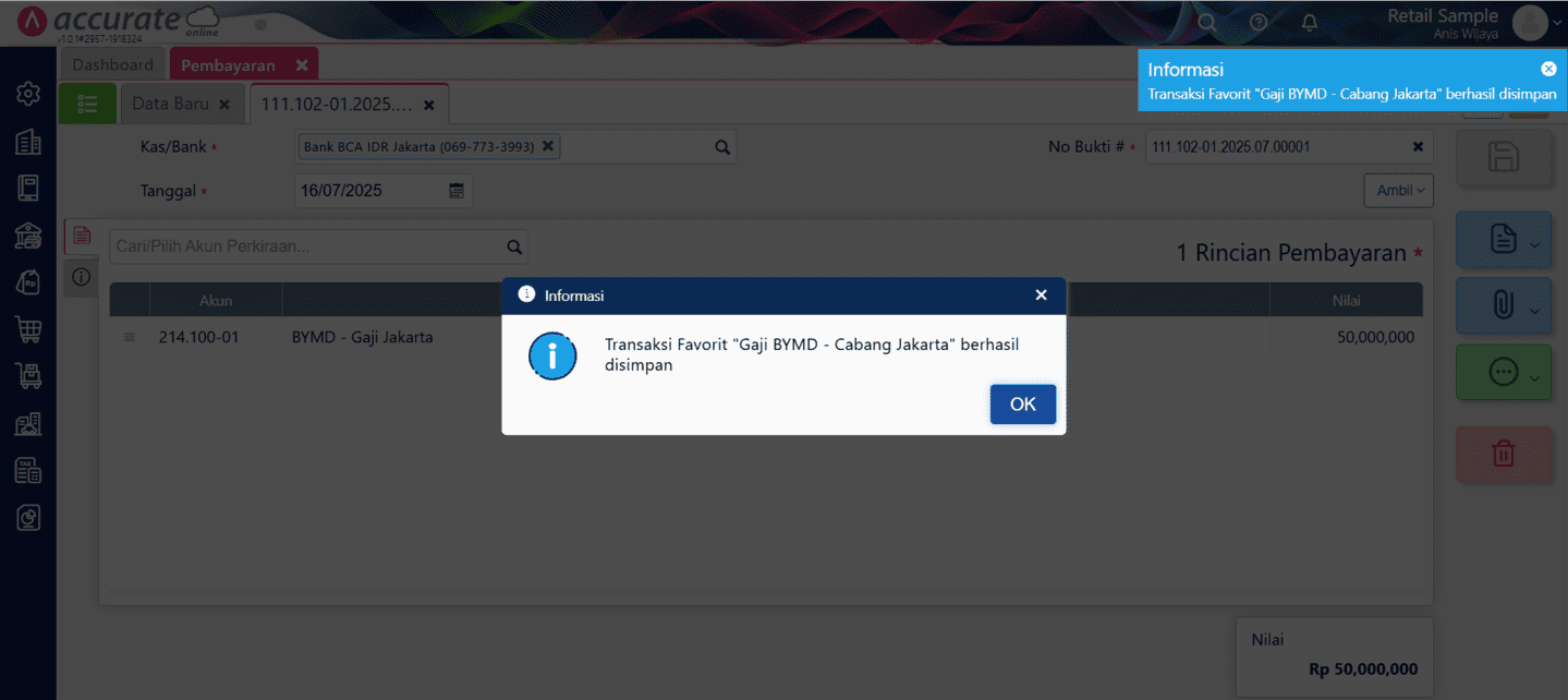 5. Maka Anda akan otomatis memanggil transaksi yang dibutuhkan dari fitur Transaksi Favorit.