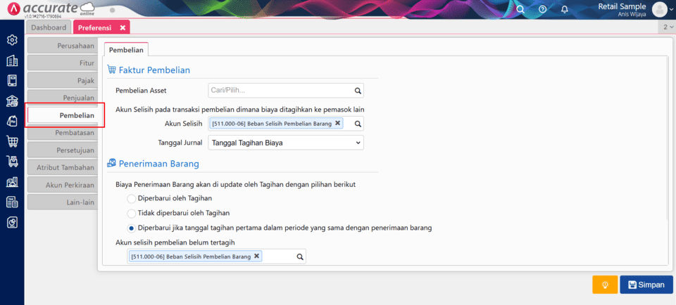 Berikut informasi Pembelian di fitur preferensi Accurate Online: