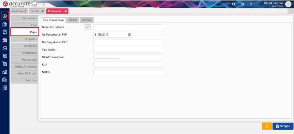 Bagi perusahaan yang telah terdaftar sebagai PKP (Perusahaan Kena Pajak), penting untuk melakukan pengaturan pajak di fitur preferensi Accurate Online. Hal ini dapat dilakukan dengan mengatur preferensi pajak di Accurate Online, sehingga semua transaksi dan laporan keuangan dapat dikelola dengan baik.