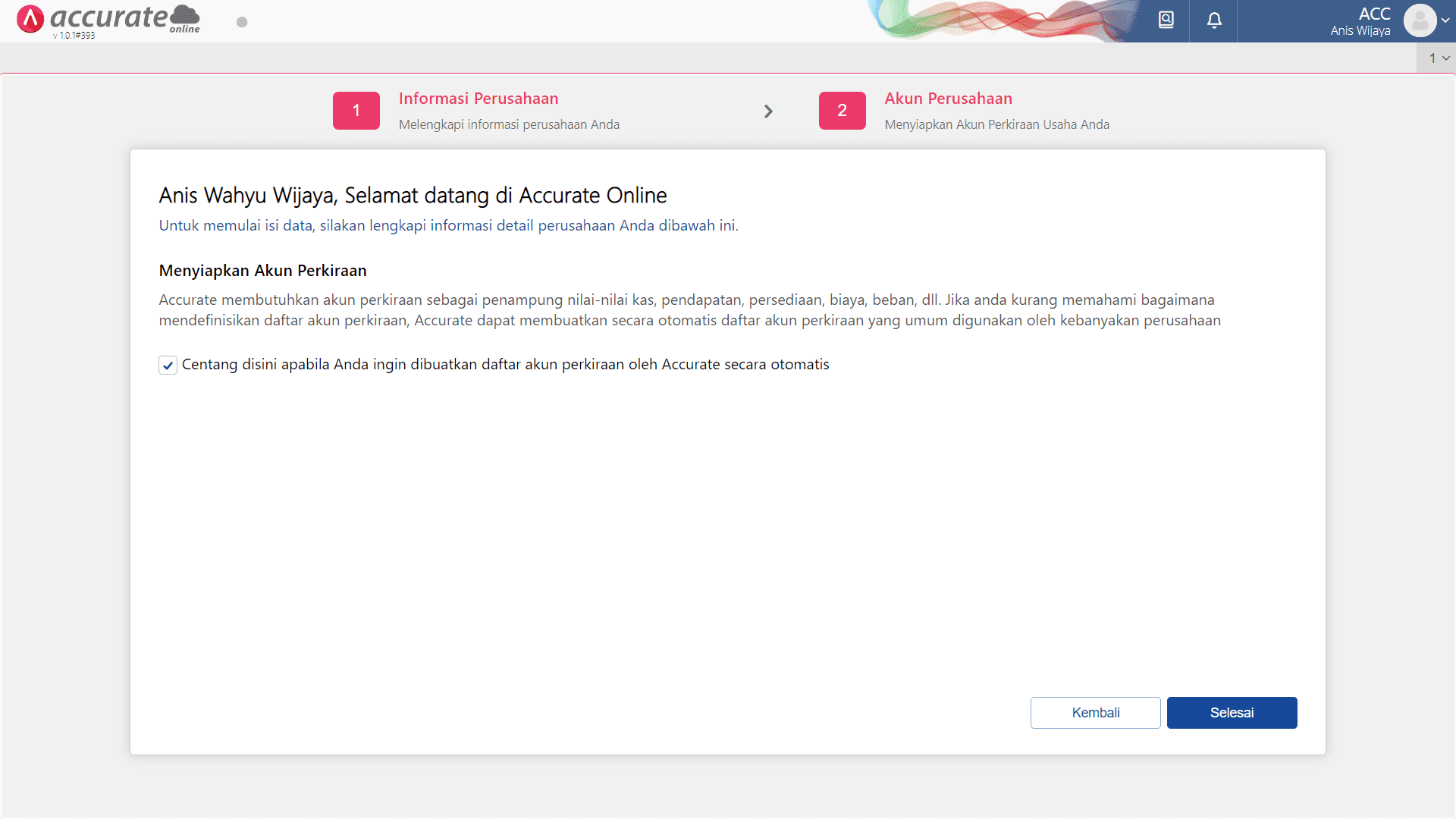 Wizard Akun Perkiraan Accurate Online